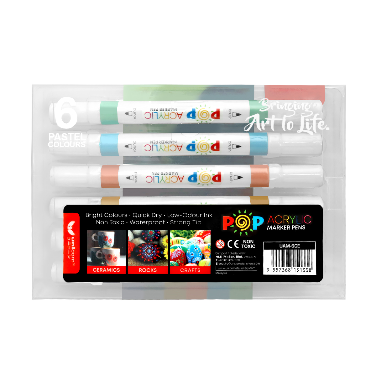 Unicorn Stationery 6 Colours Dual Tip POP Acrylic Paint Marker UAM-6CE