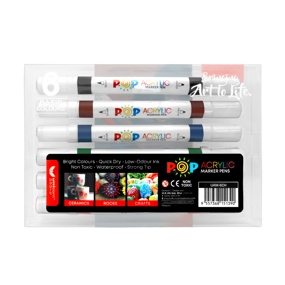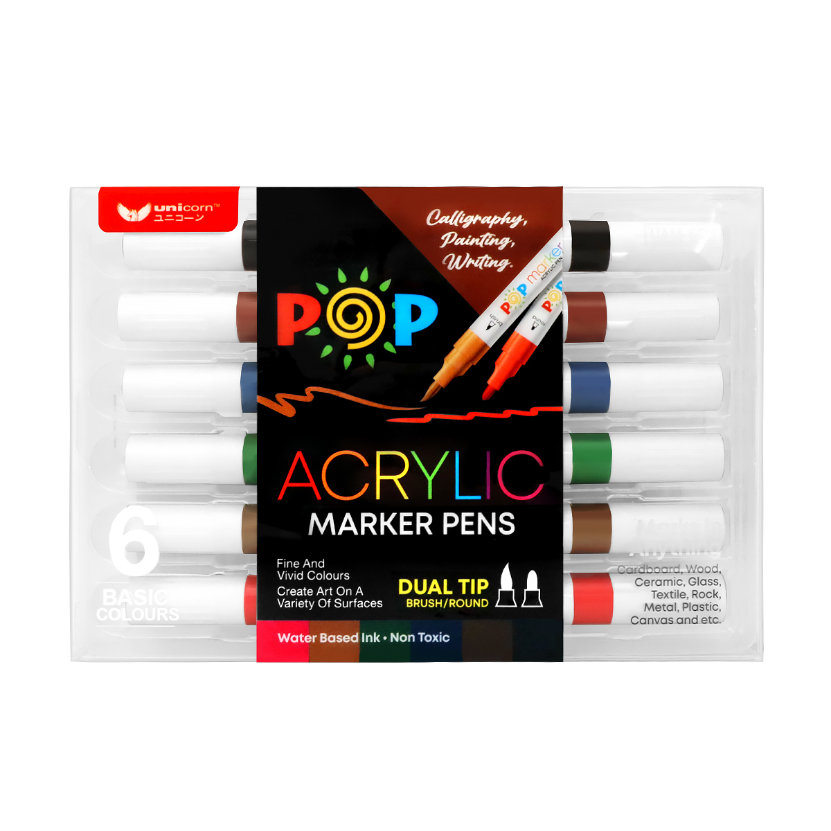 Unicorn Stationery 6 Colours Dual Tip POP Acrylic Paint Marker UAM-6CH