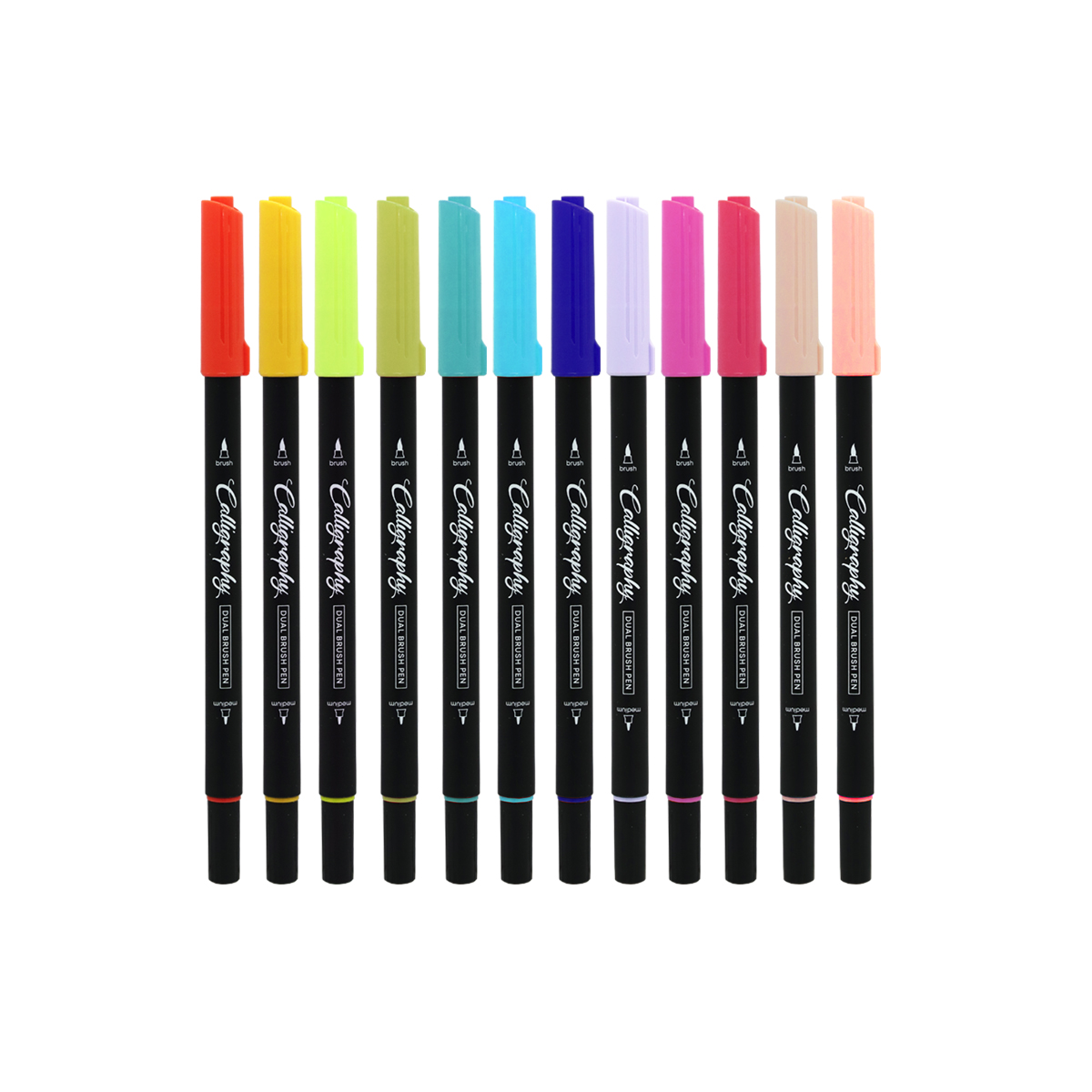 Unicorn Stationery Calligraphy Dual Brush Pen Pastel Colour UCB-12P